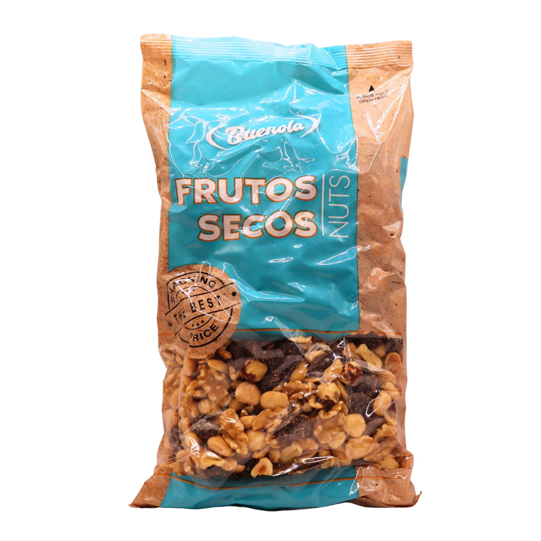 Cepti ZEMESRIEKSTI [ZEMESRIEKSTI saulespuķu eļļa ar augstu oleīnskābes saturu], Kalifornijas rozīnes [vīnogu rozīnes, kokvilnas sēklu/saulespuķu eļļa], VALRIEKSTU kodoli, ceptas MANDELES [MANDELES, saulespuķu eļļa ar augstu oleīnskābes saturu], grauzdēti LAZDU RIEKSTI. Satur SOJAS, PIENA, CITU RIEKSTU daļiņas