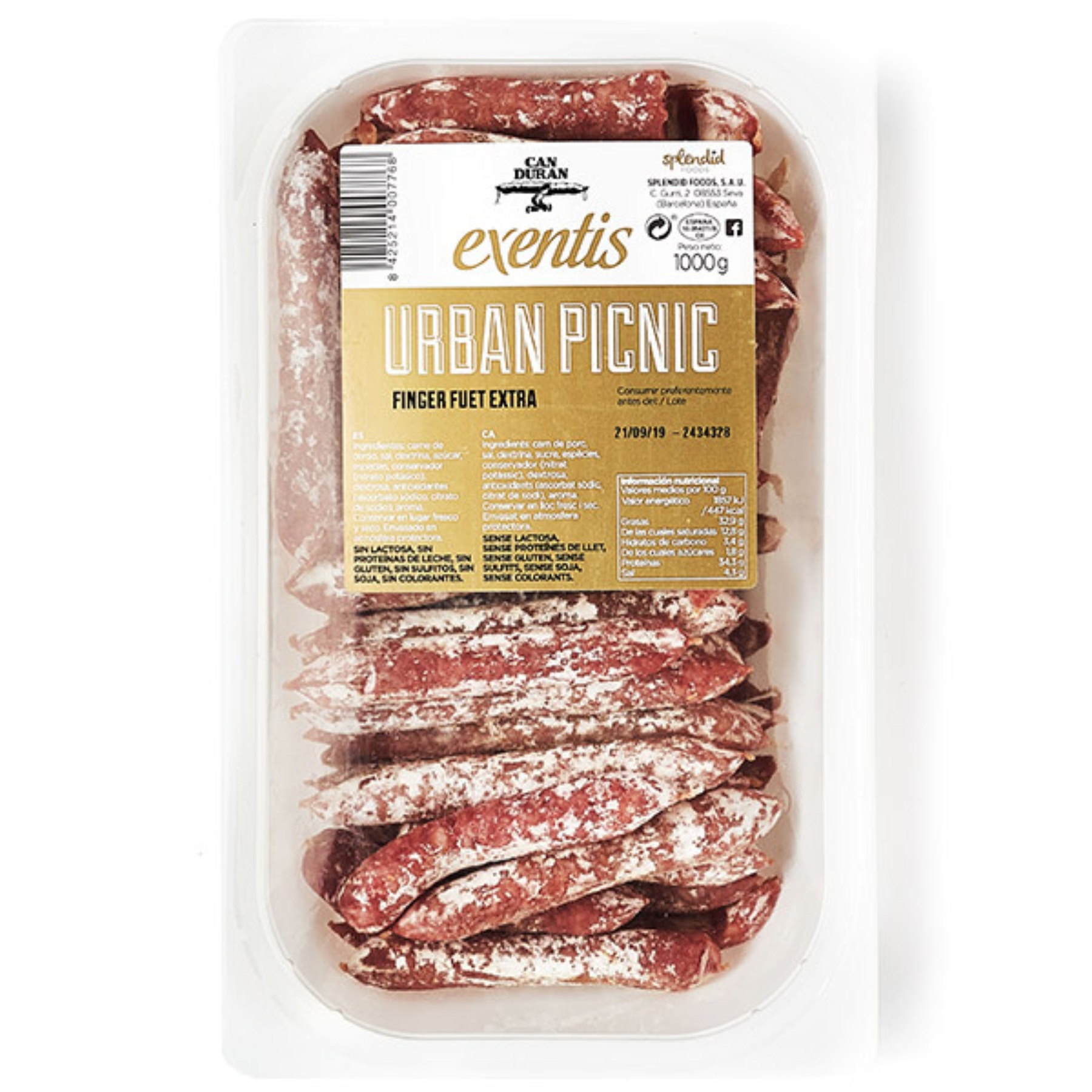 Vītinātas cūkgaļas desa Fuet (mini). Bez lactozes. Bez piena proteīniem. Bez glutena. Bez sojas. Bez konservantiem.