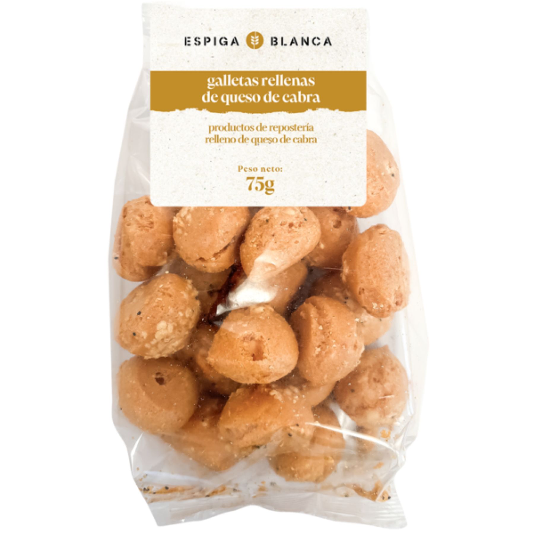 Augu eļļas un hidrogenētas augu eļļas (kokosa, rapšu, saulespuķu), olas pasterizētas nesadalītas, rīsu ciete, sausais siers (satur pienu, krāsviela: E160b(ii)), paniņu pulveris (piens), kausēta kazas siera pulveris 3,4% (satur pienu), rīsu milti, kviešu milti, dabīgs aromatizētājs (satur pienu), stabilizētājs: sorbīti, krējuma siera pulveris (satur pienu), kviešu ciete, rīvmaize (kviešu milti, sāls, raugs, krāsvielas: E100, E160b(ii)), sāls, melnie pipari 0,4%, kartupeļu ciete, magoņu sēklas, celšanas līdzekļi (E575, E500, tickener E415, krāsviela: E160b(ii). Var saturēt zivju, sojas, riekstu ar čaumalu daļiņas
