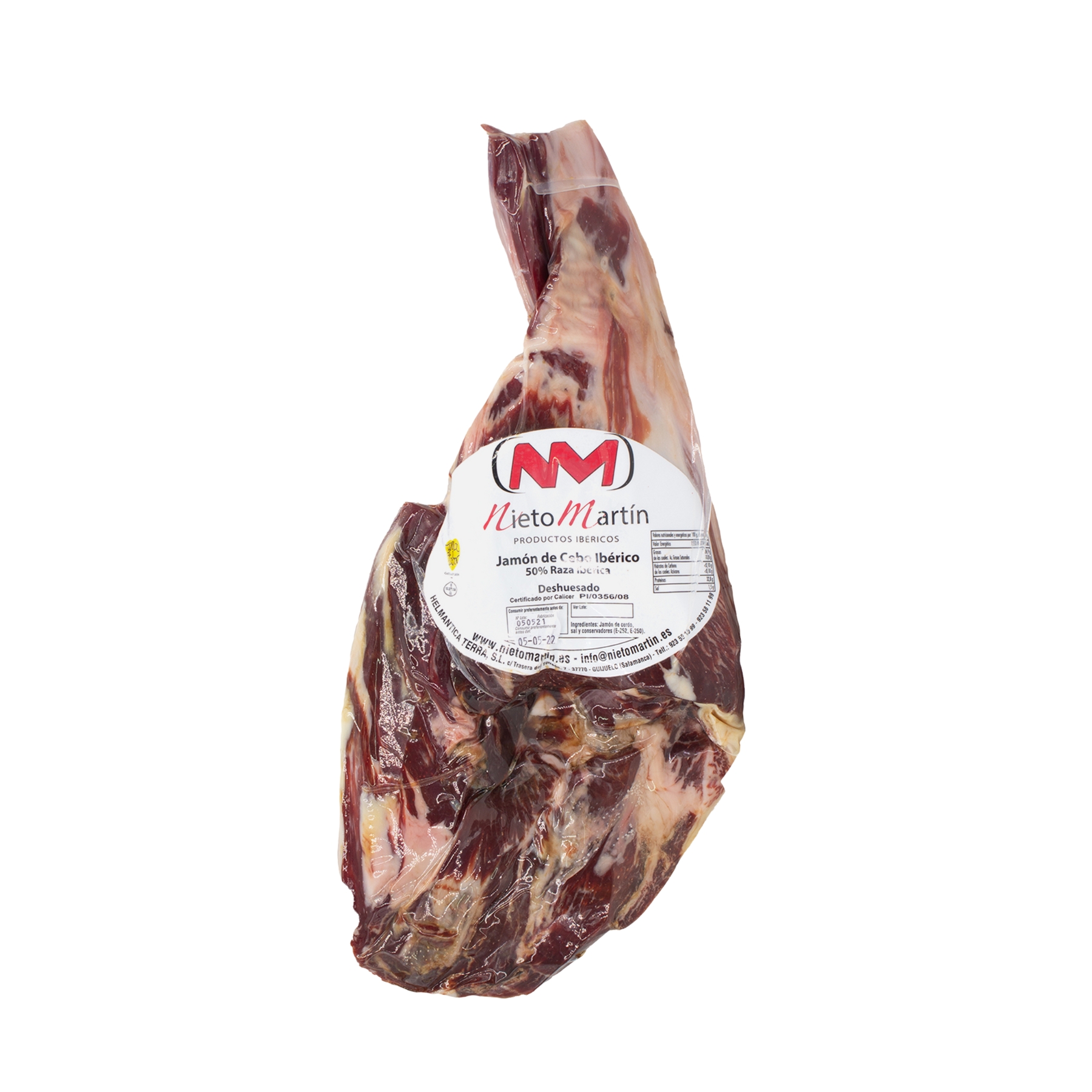 Vītināta cūkgaļa Jamon Iberico cebo. Tīra (bez ādas un kaula). Vītināts no 24 menešiem. Iepakots vakumā. Bez glutena un alergēniem.